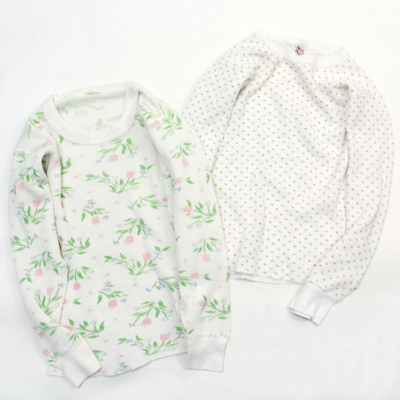 “ユーエスユーズド”の花柄ワッフル2PロングTシャツ