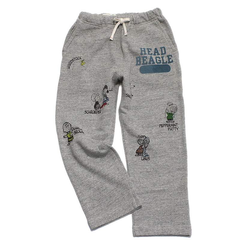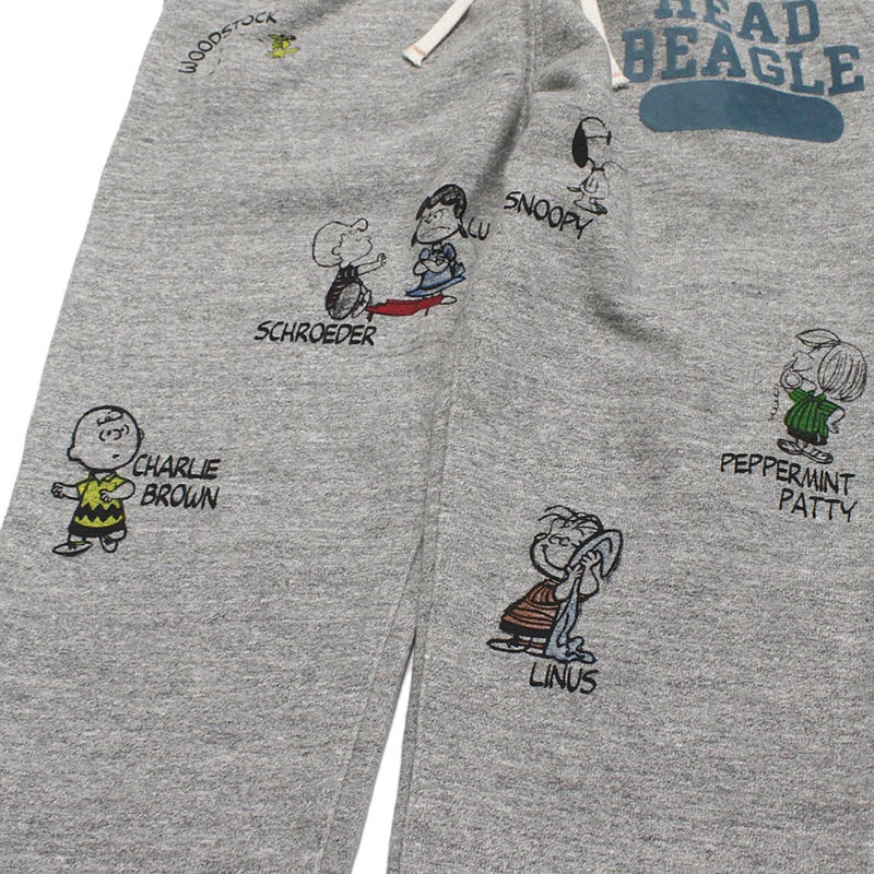 ・スヌーピーと仲間たちをプリントしたスウェットパンツ