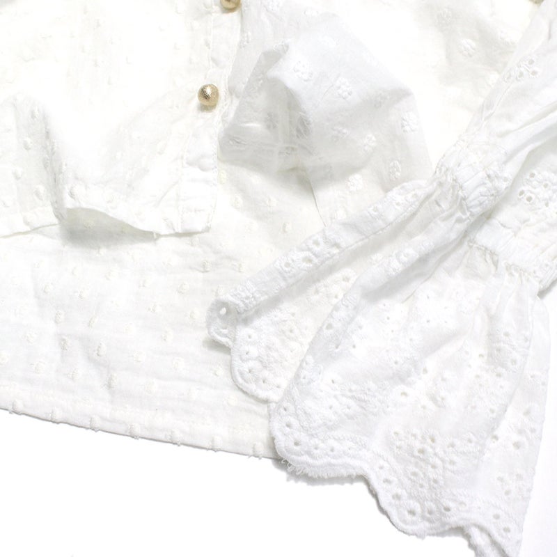 ・袖は花柄のカットワークで切り替えたデザイン