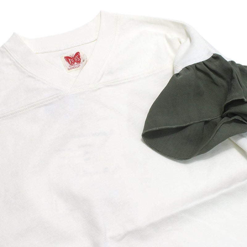 ・ベースはワイドシルエットのVネックフットボールT