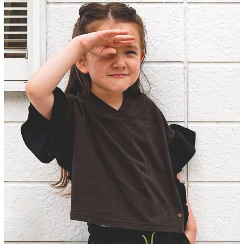 ・ベースはワイドシルエットのVネックフットボールT