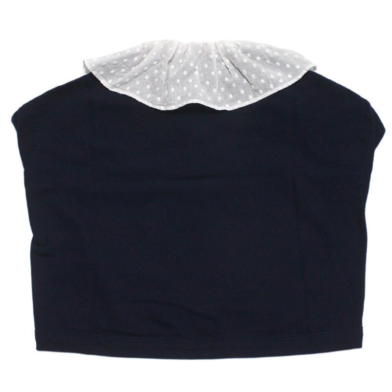 ・小さなドットのフリル衿をあしらったポロシャツ