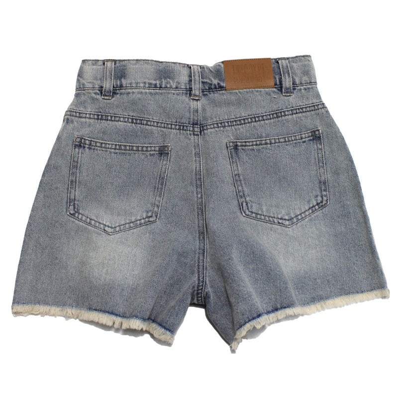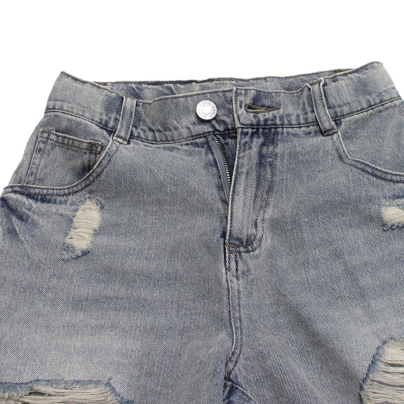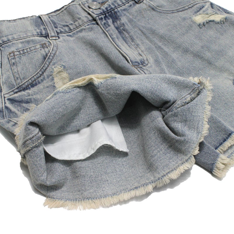 ・ダメージ加工を施したデニムショートパンツ