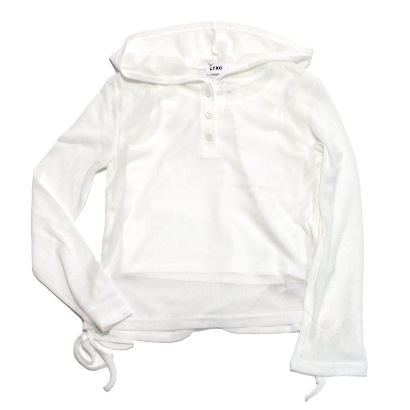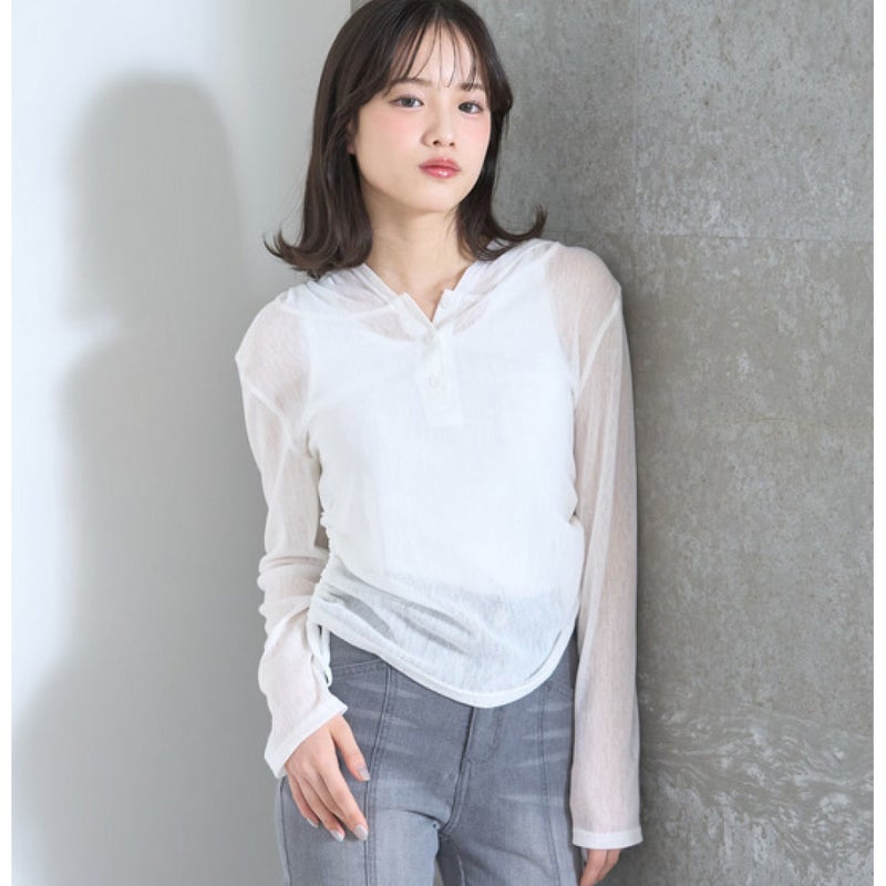 “ラブトキシック”のインナー付シアーヘンリーフードニットカットソー