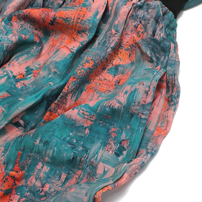 [マルーク] アブストラクトハンカチーフスリーブワンピース グリーン系(29)
