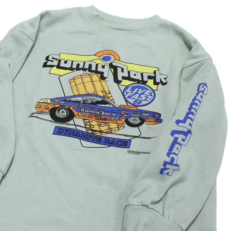 ・カラフルなレーシングカーのプリントが目を惹くTシャツ