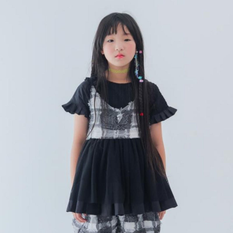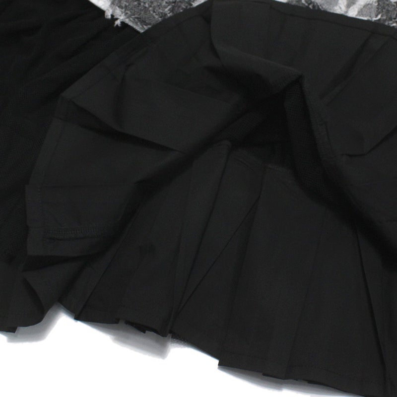 ・胸元のフリンジ生地にメッシュを重ねた切替デザイン