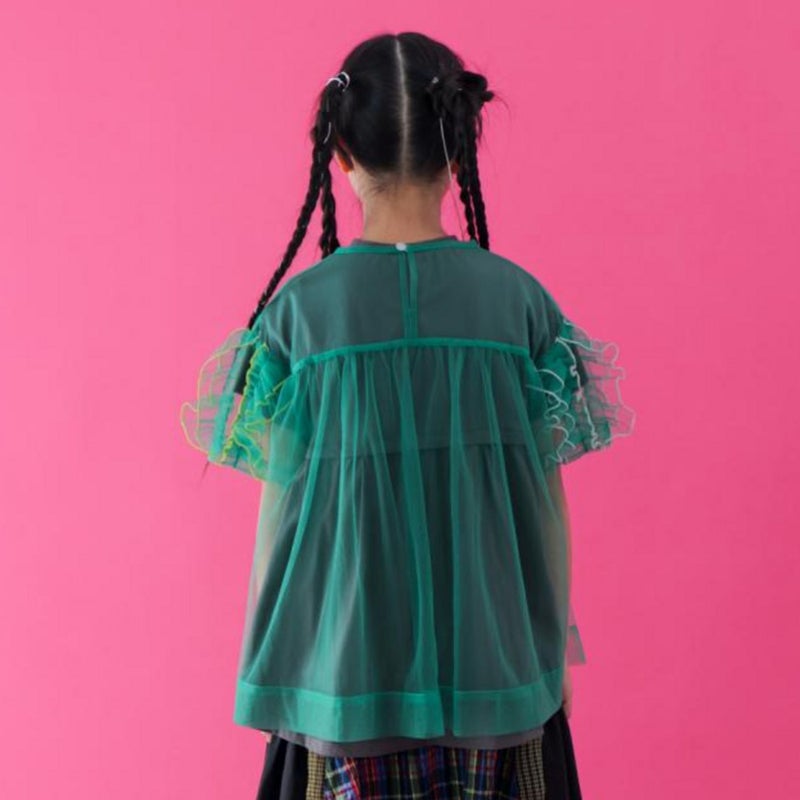 [ユニカ] チュールカラーメロウフリルブラウス グリーン(9)
