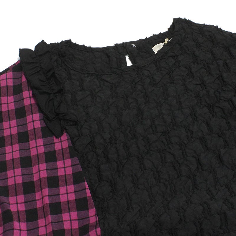“ユニカ”のチェックヘムプリーツレイヤードブラウス