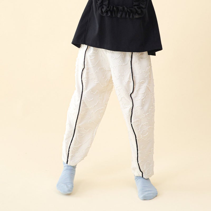 ・凹凸のある柔らかな素材感を使用したパンツ