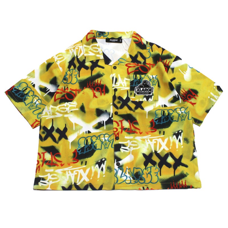 “エクストララージキッズ”のスプレーアート総柄半袖シャツ