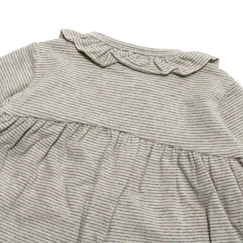 ・ふんわりと広がるフレアデザインと衿ぐりのフリルがアクセント