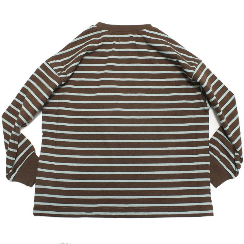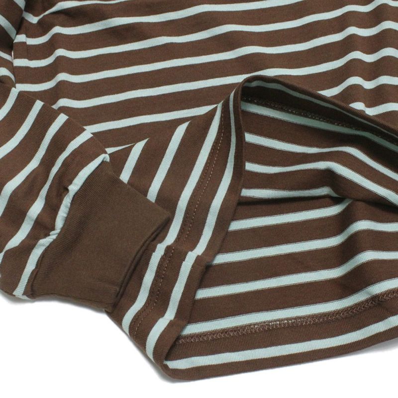 [オーシャン&グラウンド] ボーダーソデリブTシャツ ブラウン(BR)