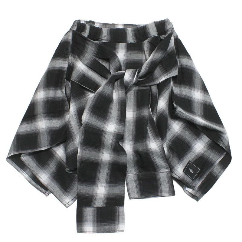 ・チェックシャツを腰巻したようなデザイン