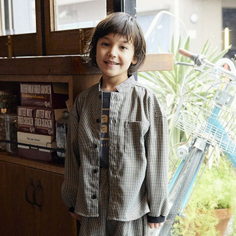 MODEL:114cm / 19kg / グリーンチェック M(110-120)サイズ着用