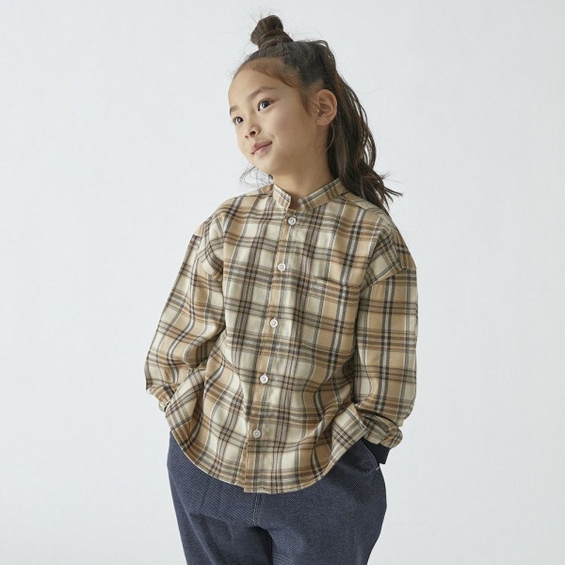 5. [フォブ] チェックマオカラーシャツ ベージュ(BE)