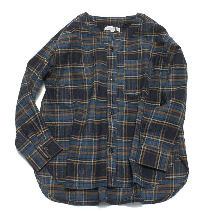 [オーシャン&グラウンド] チェックカーディガンシャツ ネイビー(NV)