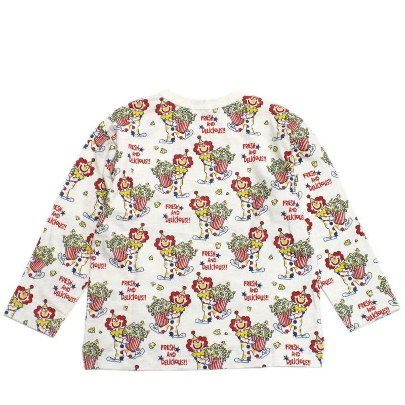 ・ピエロとポップコーンをプリントした総柄のロンT