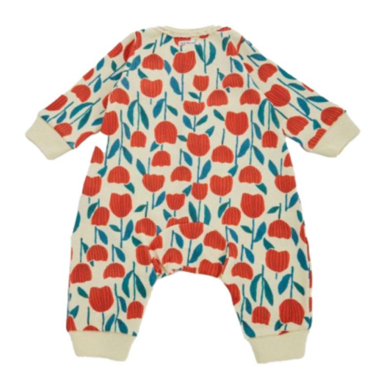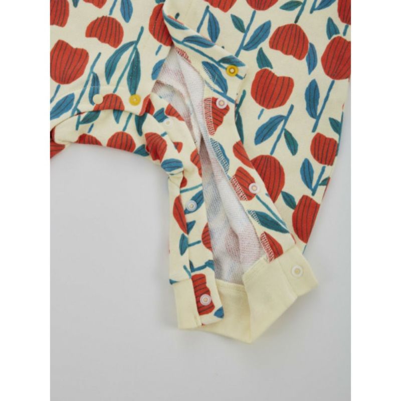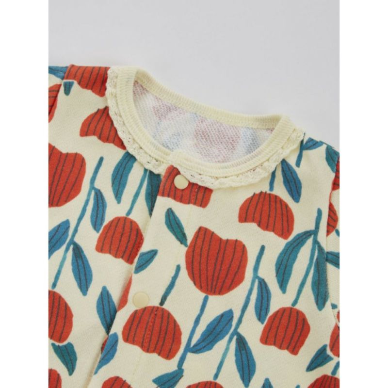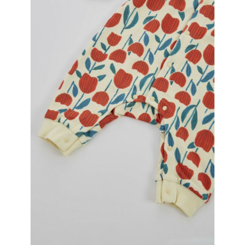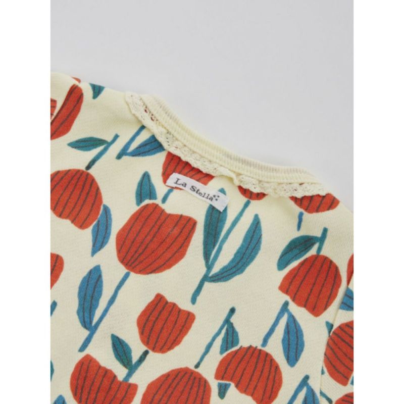 ・手描きタッチの大きなチューリップ柄とカラフルなりんご柄の2柄展開