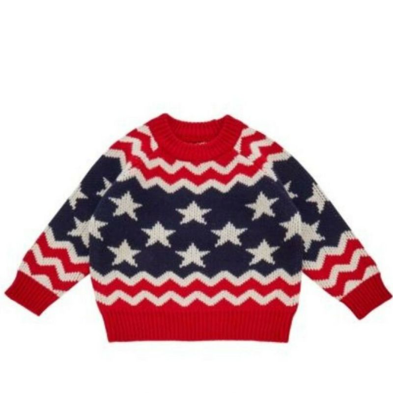 アメリカ国旗をイメージしたポップな柄が目を引くセーター