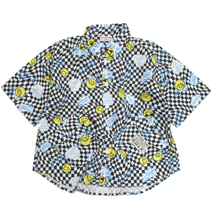 ・ポップなデザインが目を惹く総柄半袖シャツ