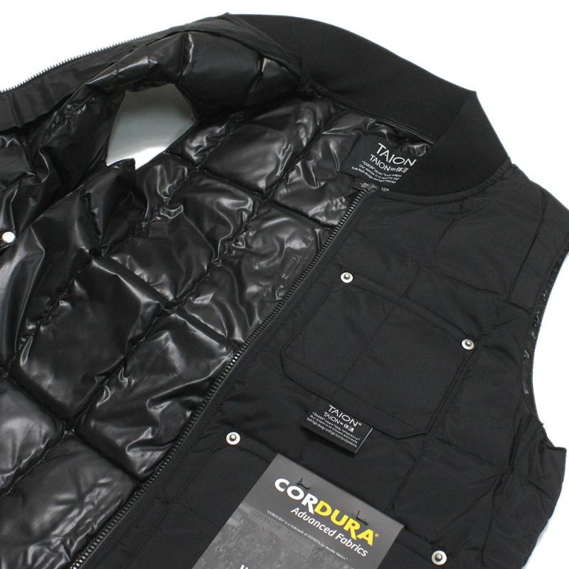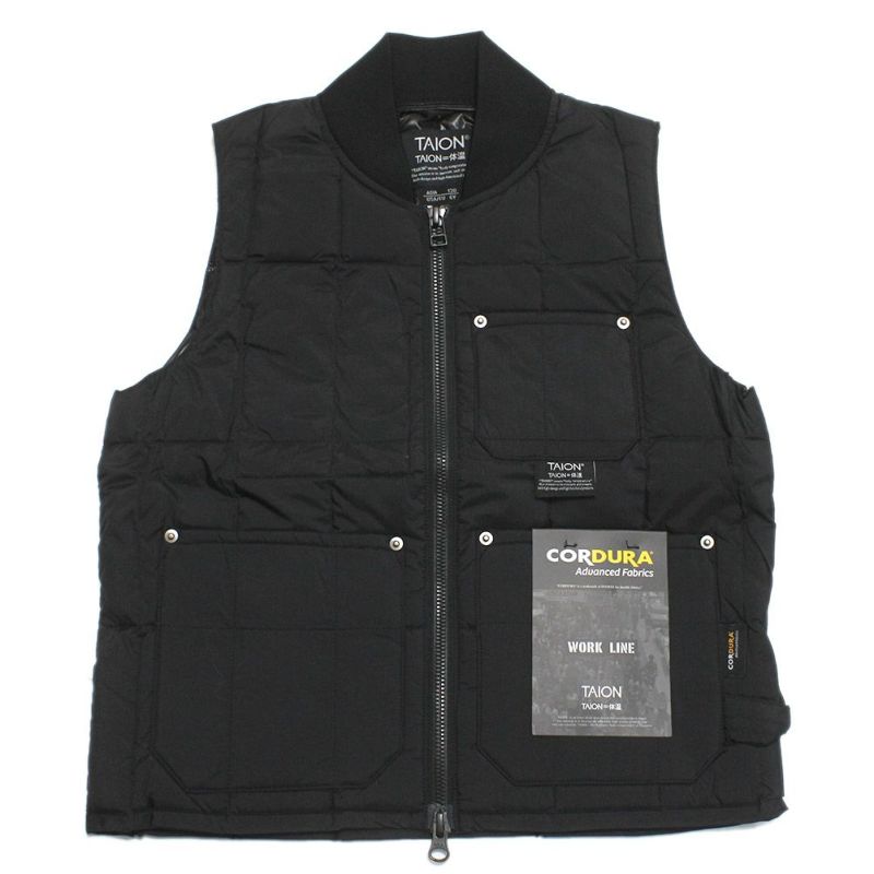 [タイオン] ワーク リブネックWジップ ダウンベスト ブラック(BLK)